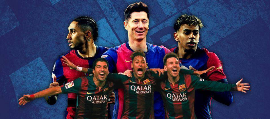 莱万、拉菲尼亚和亚马尔的三叉戟实际上已超越了巴萨第二次夺得欧冠时前锋线的进球记录。2005-06赛季,埃托奥、罗纳尔迪尼奥和拉尔森组成的三叉戟贡献75个进球。